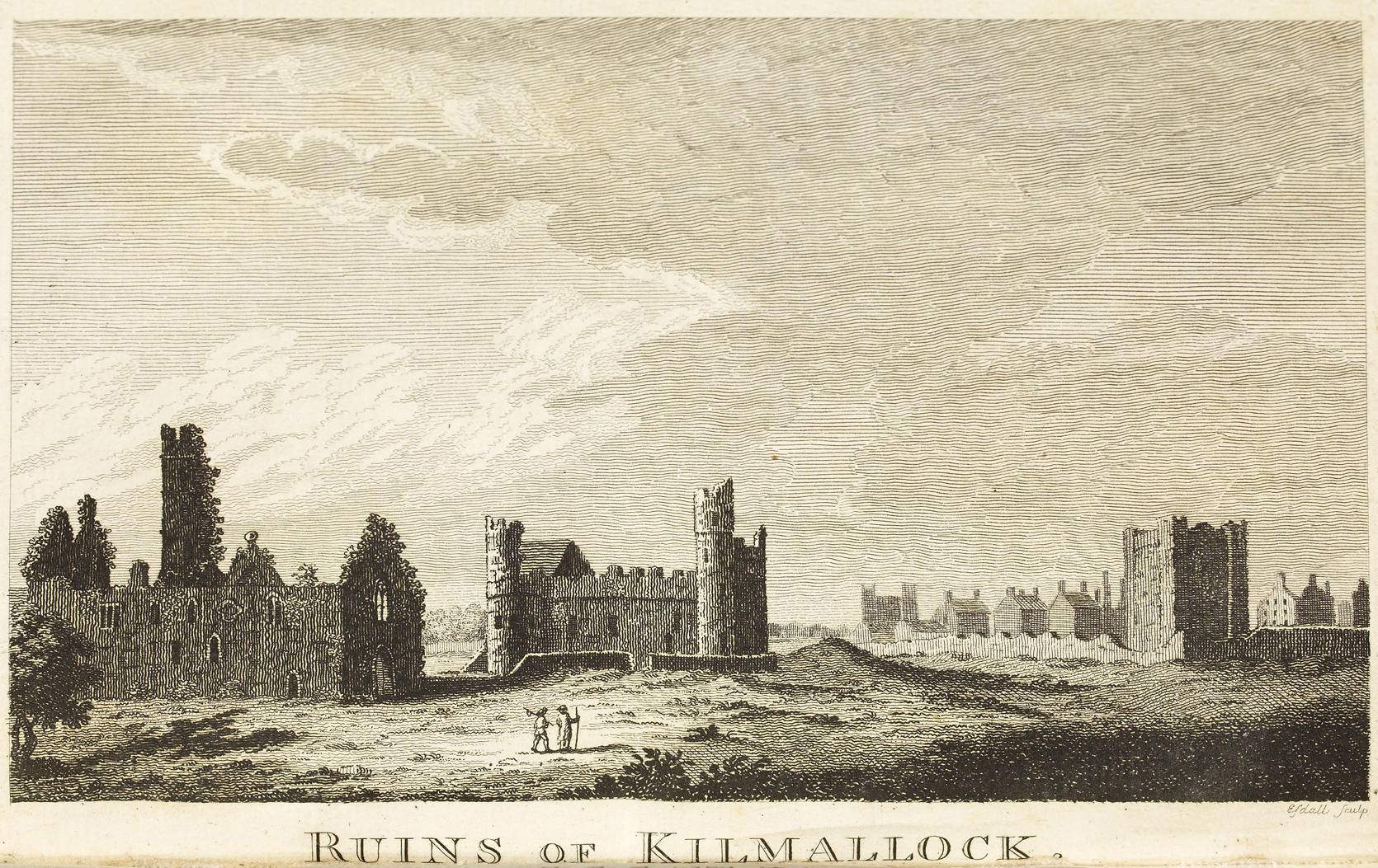 | LETTER XXIV. Limerick, October 20, 1775. LEAVING Buttevant, I thought the ne plus ultra of human wretchedness was then passed, but Kilmallock was before me. Had such scenes presented themselves on leaving Dublin, curiosity might have proved too weak an incentive to pro- [p.212] ceed; I should have turned back again, to avoid the sight of misery, which I could not but feel, without being able to remove. I had been told at Charleville, that the next stage was Bruff, and there I purposed to breakfast; but after riding a few miles, and staring at a sight so unusual as a well planted park, I unexpectedly turned through an arch, under an old castle, into a spacious street, composed of houses, which, though magnificent, were windowless and roofless. An inn was a sound unknown here; I got, however, a stable for my horses, and a room for myself, where, I suppose, a fire had not been kindled since the last election; for these ruins send two members to parliament. Sheds were raised, within these noble structures, too nasty for the habitation of English pigs. Happy would it be for Ireland, if her corporate towns were divested of the privilege of returning representatives to the great council of the nation; for it becomes the selfish policy of the lord of the soil to impoverish the voters into compliance. [p.213] Kilmallock must be a place of high antiquity. It is reported to have been a walled town before the English got footing here. Sir James Ware relates, that an Abbey of Dominicans, or Black Friars, was built there in the thirteenth century by the sovereign, brethren, and commonalty. It formerly gave title to an Earl, and preserves a greater share of magnificence, even in its ruins, than any thing I had yet seen in Ireland. I call it the Irish Balbeck. There was something so picturesque in the perspective of this place, that I could not help attempting to delineate it. I send you my essay done, as you see it, in less than an hour; I must, however, remark to you that I began upon a scale too large for my paper, and was not able to take in the whole town. There is but one street now standing entire; but from some scattered piles, and from the foundation of others, there is reason to suppose that there have been more. The walls round the town, which in many places still remain, are of an oblong square. At each angle has been a castle, like those under which the traveller passes, at the ends [p.214] of the remaining street, and which you may trace in my sketch. One of these is the jail of the city. What must you think of the jail of Kilmallock, which is itself the most dreary of all prisons ? The religious houses which you may remark in the foreground have been stately, Where my high steeples whilom used to stand, On which the lordly Faulcon wont to towre, There now is but an heap of lime and sand, For the screech-owl to build her baleful bowre. This town was abandoned by the Irish, during the last siege of Limerick, and fitted up by the English as a magazine for stores. It is conjectured, that Kil-malech was the original name. Bochart speaking of the Tyrian Hercules, or Melcartus, says, that Malech-cartha, signifies the king of the city, and O'Connor fays, that Mal-Kathrach is of the same import in Irish. [p.211-214] |