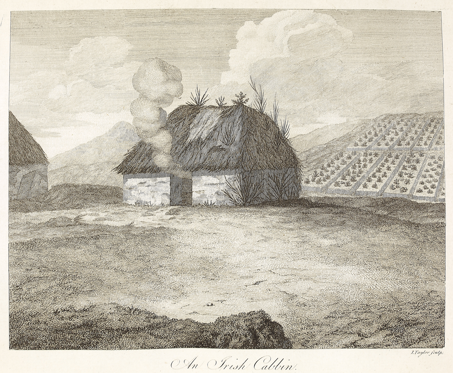 | HABITATIONS. / The cottages of the Irish, which are all called cabbins, are the most miserable looking hovels that can well be conceived: they generally consist of only one room: mud kneaded with straw is the common material of the walls; these are rarely above seven feet high, and not always above five or six; they are about two feet thick, and have only a door, which lets in light instead of a window, and should let the smoak out instead of a chimney, but they had rather keep it in: these two conveniencies they hold so cheap, that I have seen them both (stopped up in stone cottages, built by improving landlords; the smoak warms them, but certainly is as injurious to their eyes as it is to the complexions of the women, which in general // in the cabbins of Ireland has a near resemblance to that of a smoaked ham. The number of the blind poor I think greater there than in England, which is probably owing to this cause. The roofs of the cabbins are rafters, raised from the tops of the mud walls, and the covering varies; some are thatched with straw, potatoe stalks, or with heath, others only covered with sods of turf cut from a grass field; and I have seen several that were partly composed of all three; the bad repair these roofs are kept in, a hole in the thatch being often mended with turf, and weeds sprouting from every part, gives them the appearance of a weedy dunghill, especially when the cabbin is not built with regular walls, but supported on one, or perhaps on both sides by the banks of a broad dry ditch, the roof then seems a hillock, upon which perhaps the pig grazes. Some of these cabbins are much less and more miserable habitations than I had ever seen in England. I was told they were the worst in Connaught, but I found it an error; I saw many in Leinster to the full as bad, and in Wicklow, some worse than any in Connaught. When they are well roofed, and built not of stones, ill put together, but of mud, they are much warmer, independently of smoke, than the clay, or lath and mortar cottages of England, the walls of which are so thin, that a rat hole lets in the wind to the annoyance of the whole family. The furniture of the cabbins is as bad as the architecture; in very many, consisting only of a pot for boiling their potatoes, a bit of a table, and one or two broken stools; beds are not found universally, the family lying on straw, equally partook of by cows, calves and pigs, though the luxury of flies is coming in in Ireland, which excludes the poor pigs from the warmth of the bodies of their master and mistress: I remarked little hovels of earth thrown up near the cabbins, and in some places they build their turf stacks hollow, in order to afford shelter to the hogs. This is a general description, but the exceptions are very numerous. I have seen in a multitude of cabbins that had much useful furniture, and some even superfluous; chairs, tables, boxes, chests of drawers, earthen ware, and in short most of the articles found in a middling English cottage; but upon enquiry, I very generally found that these acquisitions were all made within the last ten years, a sure sign of a rising national prosperity. I think the bad cabbins and furniture the greatest instances of Irish poverty, and this must flow from the mode of payment for labour, which makes cattle so valuable to the peasant, that every farthing they can spare is saved for their purchase: from hence also results another observation, which is, that the apparent poverty of it is greater than the real; for the house of a man that is mailer of four or five cows, will have scarce anything but deficiencies; nay, I was in the cabbrns of dairymen and farmers, not small ones, whose cabbins // were not at all better, or better furnished than those of the poorest labourer: before, therefore, we can attribute it to absolute poverty, we must take into the account the customs and inclinations of the people. In England a man's cottage will be filled with superfluities before he possesses a cow. I think the comparison much in favour of the Irishman; a hog is a muck more valuable piece of goods than a set of tea things; and though his snout in a crock [footnote: ‘the iron pot of an irish cabbin’] of potatoes is an idea not so poetical as / Broken tea cups, wisely kept for shew, / Rang’d o’er the chimney, glisten’d in a row. / Yet will the cottar and his family, at Christmas, find the solidity of it an ample recompence for the ornament of the other. [vol. 2, pp. 25-26] |